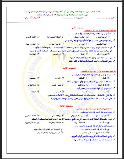 مراجعات نهائية.. أسئلة تقييم الأسبوع الـ 14 جغرافيا التنمية الصف الثاني الثانوي