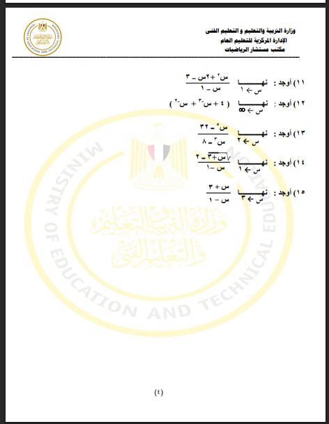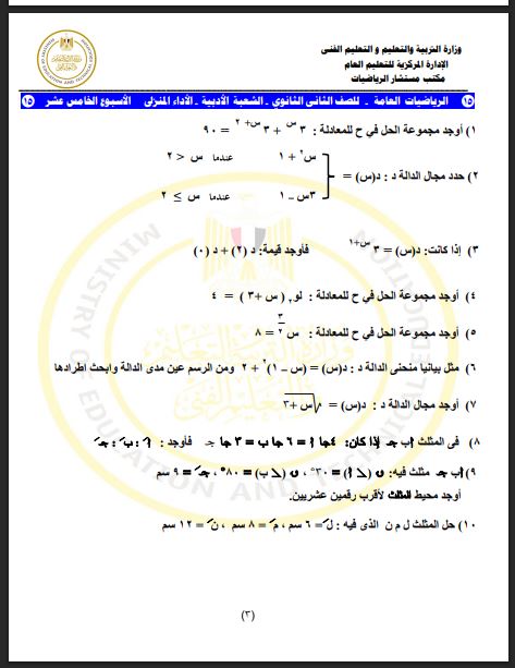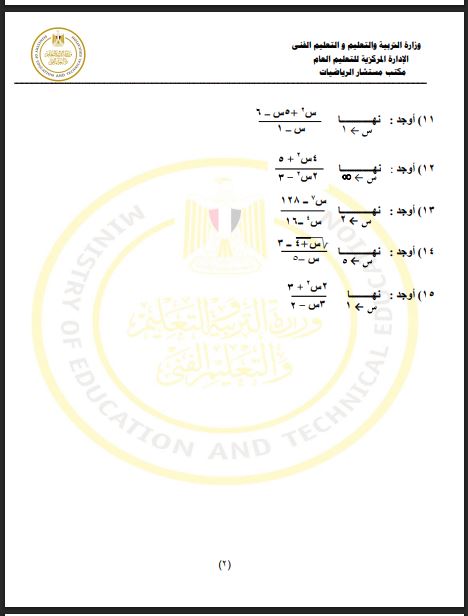 مراجعات نهائية.. أسئلة تقييم الأسبوع الـ 15 الرياضيات البحتة الصف الثاني الثانوي