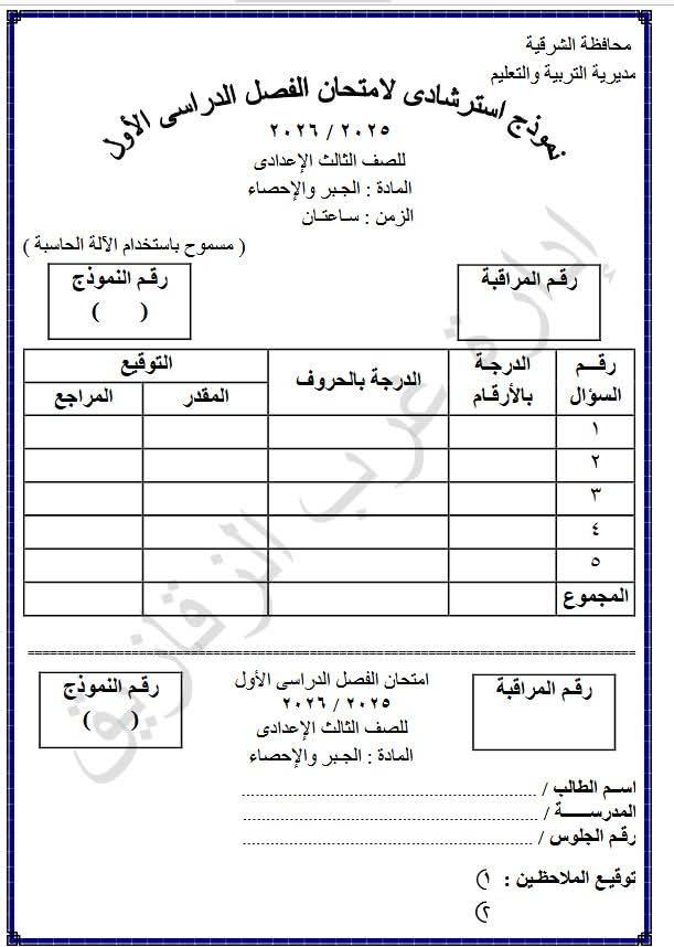 مراجعات نهائية.. وتحميل نموذج استرشادي في الجبر محافظة الشرقية، تضمن لك دخول الامتحان وهو في جيبك، لطلاب وطالبات الصف الثالث الإعدادي، من خلال امتحانات الرياضيات، تضمن لك مراجعات نهائية في منهج الفصل الدراسي الأول، والتى تعد مرجعا أساسيا في مراجعات نهائيه، لمقرر المنهج الدراسي للعام الدراسي الجاري 2025-2026، أعدها خبراء المادة في وزارة التربية والتعليم، من أجل مراجعات نهائيه لطلاب الثالث الإعدادي.