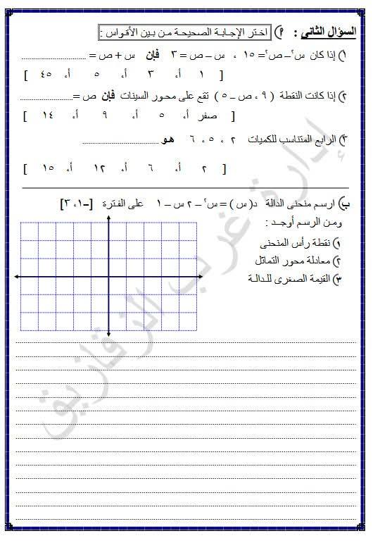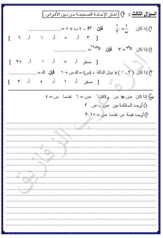 مراجعات نهائية في مقرر الفصل الدراسي الأول الجبر الشهادة الإعدادية
