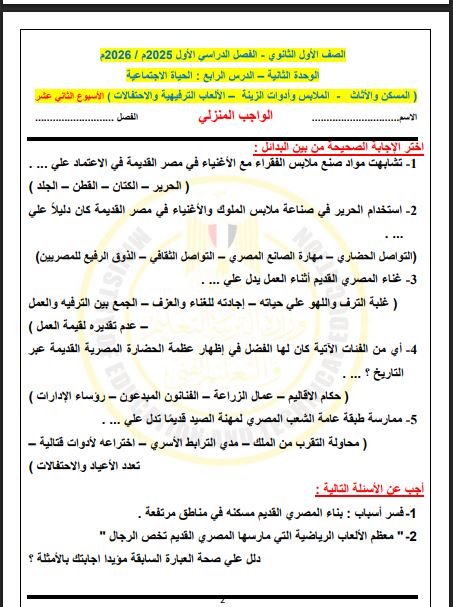 أسئلة تقييمات الأسبوع الـ 12.. وتحميل أقوى أسئلة تقييم الأسبوع الـ 12 التاريخ الصف الأول الثانوي، تضمن لك دخول الامتحان وهو في جيبك، من خلال امتحانات مادة التاريخ، تضمن لك مراجعات نهائية في منهج الفصل الدراسي الأول، والتى تعد مرجعا أساسيا في مراجعات نهائية، لمقرر المنهج الدراسي للعام الدراسي الجاري 2025-2026، أعدها خبراء المادة في وزارة التربية والتعليم، من أجل مراجعات نهائيه لطلاب الصف الأول الثانوي، وللدخول على رابط التقييم الأسبوع الـ 12 في مادة التاريخ من خلال هذا الرابط.. اضغط هنااااااااااااا.