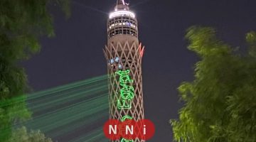 برج القاهرة يتألق بالعبارات الترحيبية استعدادًا لافتتاح المتحف المصري الكبير