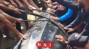 ظهور سمكة عملاقة في خان يونس يجلب الرزق والدهشة للصيادين والنازحين