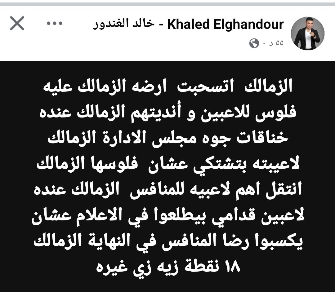 خالد الغندور نجم نادي الزمالك السابق عبر حسابه على موقع التواصل الاجتماعي فيسبوك تحدث قائلاً: