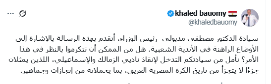 خالد بيومي من خلال تصريحات عبر حسابه على موقع التواصل الاجتماعي اكس تحدث قائلا: