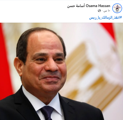 وجه أسامة حسن نجم نادي الزمالك السابق رسالة استغاثة للرئيس عبد الفتاح السيسي لانقاذ نادي الزمالك.
