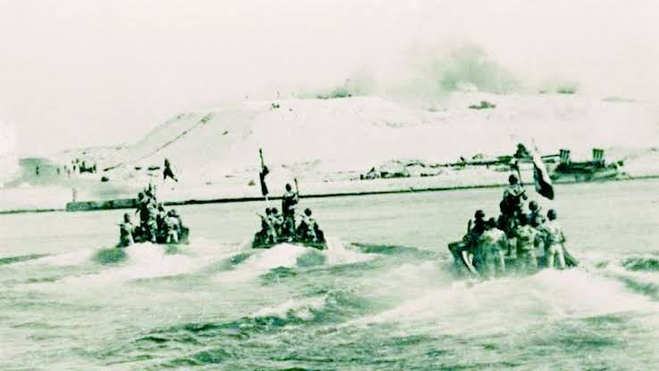 اندفع الجنود المصريون من كل الاتجاهات نحو القناة، حاملين قواربهم المطاطية، ليعبروا تحت هدير القذائف، متحدّين أمواج المياه. وما إن وصلوا إلى الساتر الترابي حتى تسلّقوه باستخدام سلالم الحبال، بارتفاع بلغ 20 مترًا، مقتحمين واحدًا من أقوى الخطوط الدفاعية في عصره.